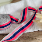 Band - Coral Grau & Navy Streifen - Meterware