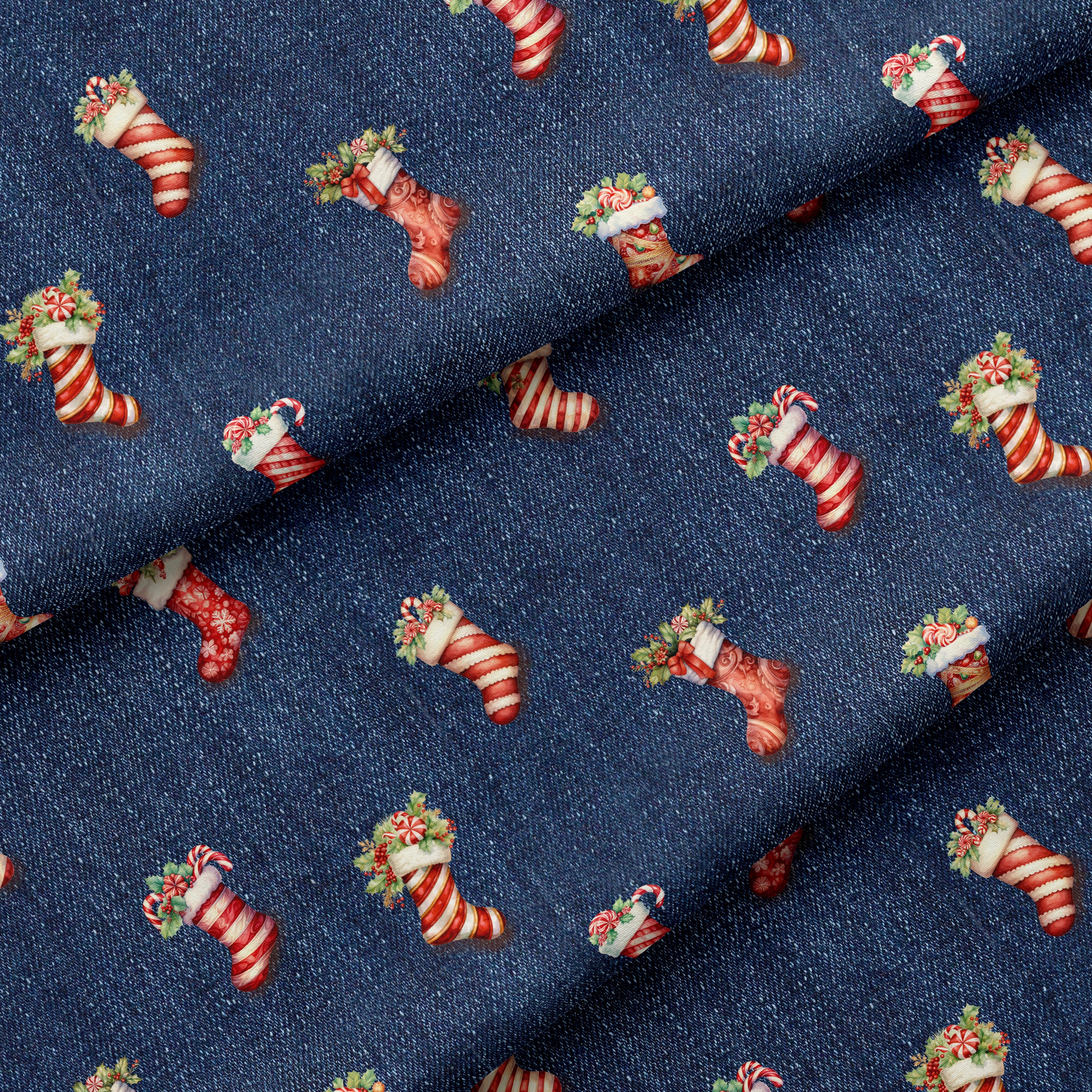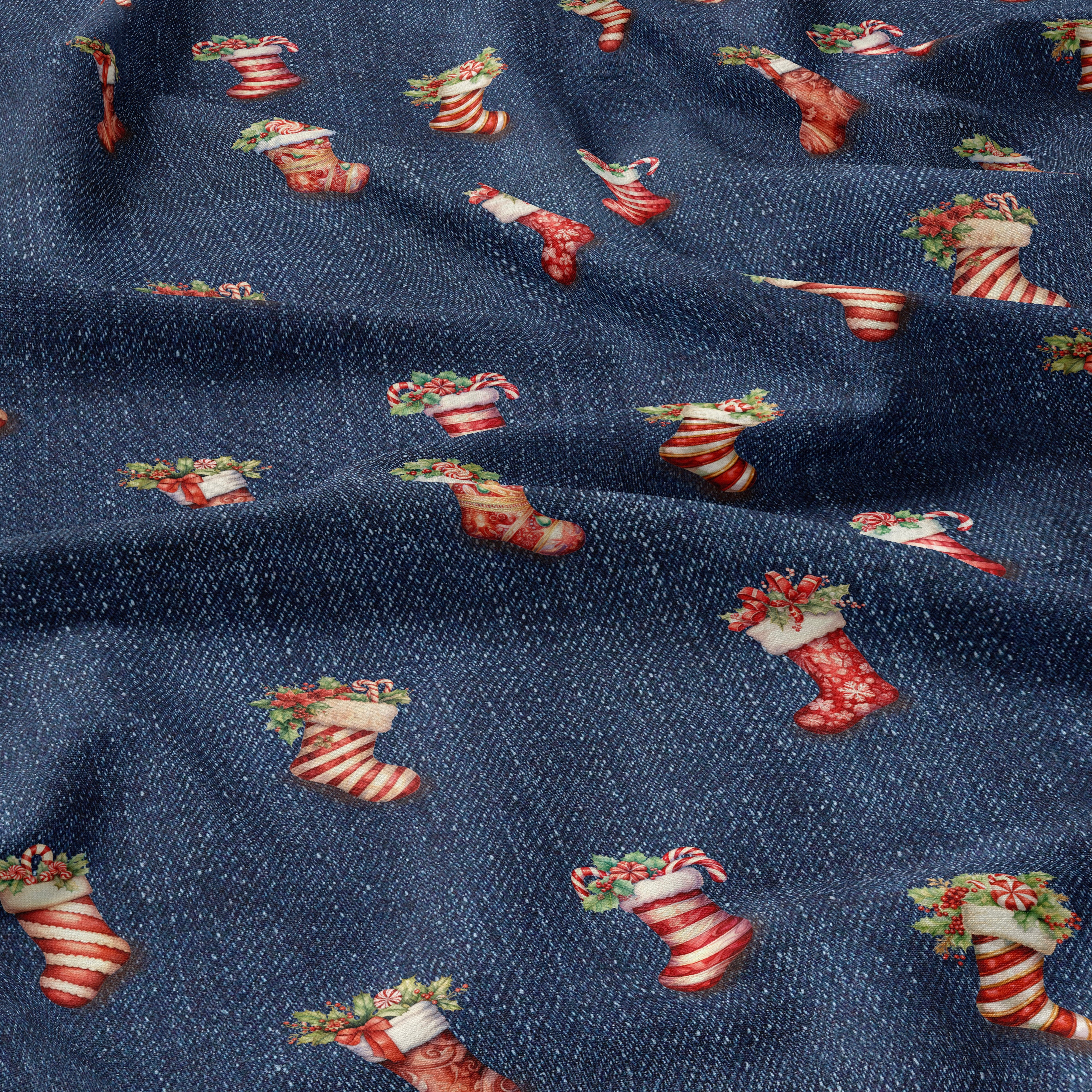 Bio French Terry - Weihnachtssocken auf Denim