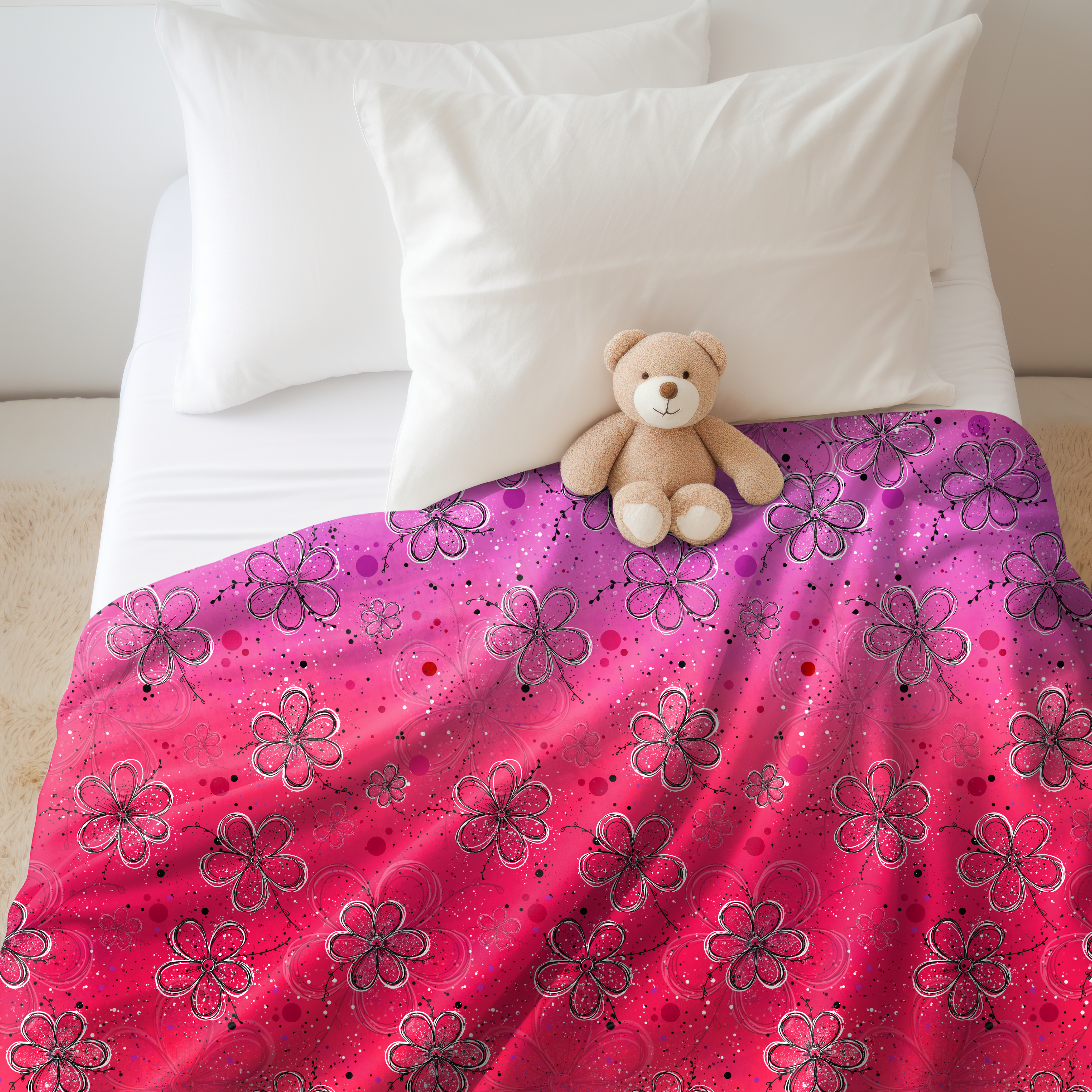Material: 100% Polyester. Bedruckt ohne chemische Zusätze. Die Decken sind hypoallergen und geruchlos.