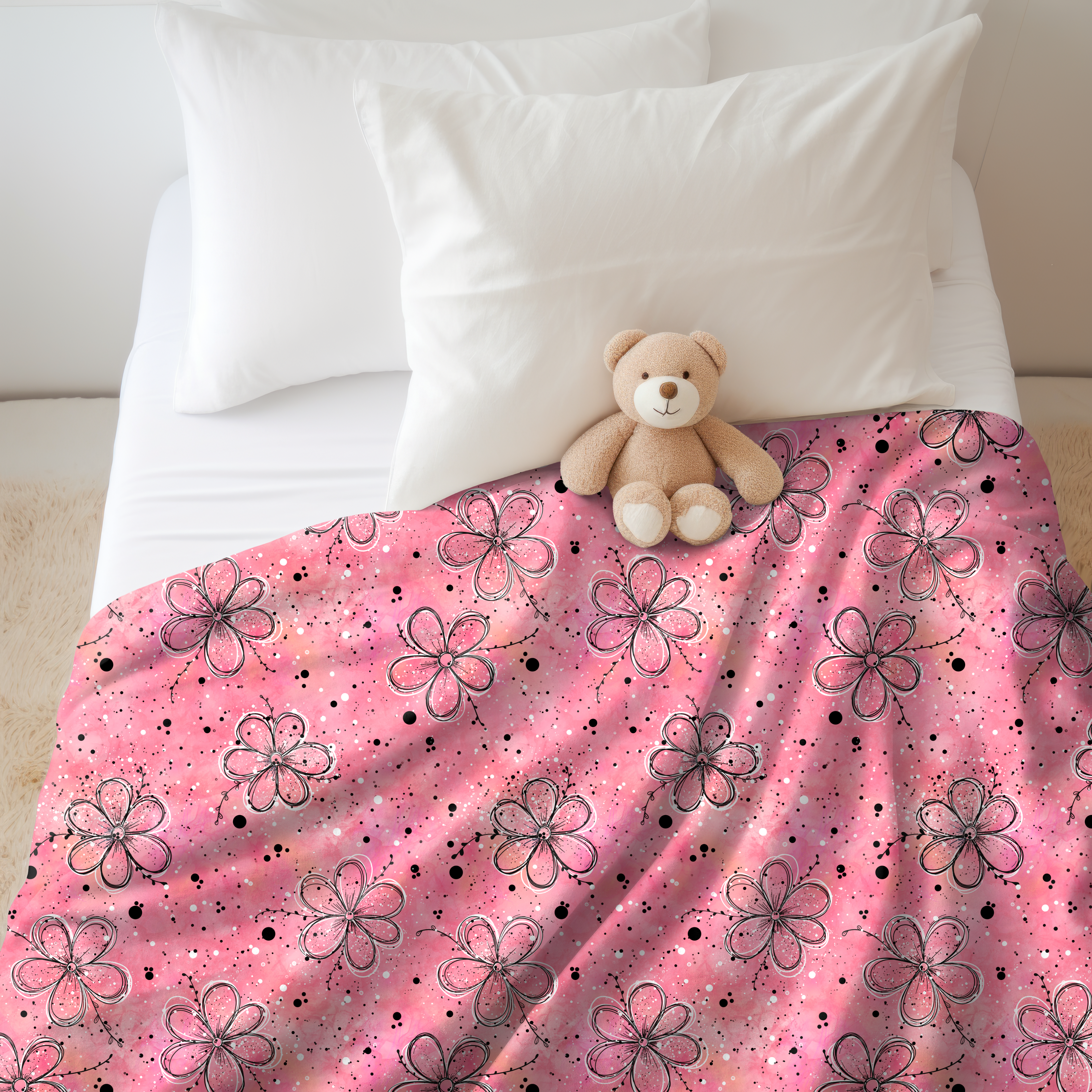 Material: 100% Polyester. Bedruckt ohne chemische Zusätze. Die Decken sind hypoallergen und geruchlos.