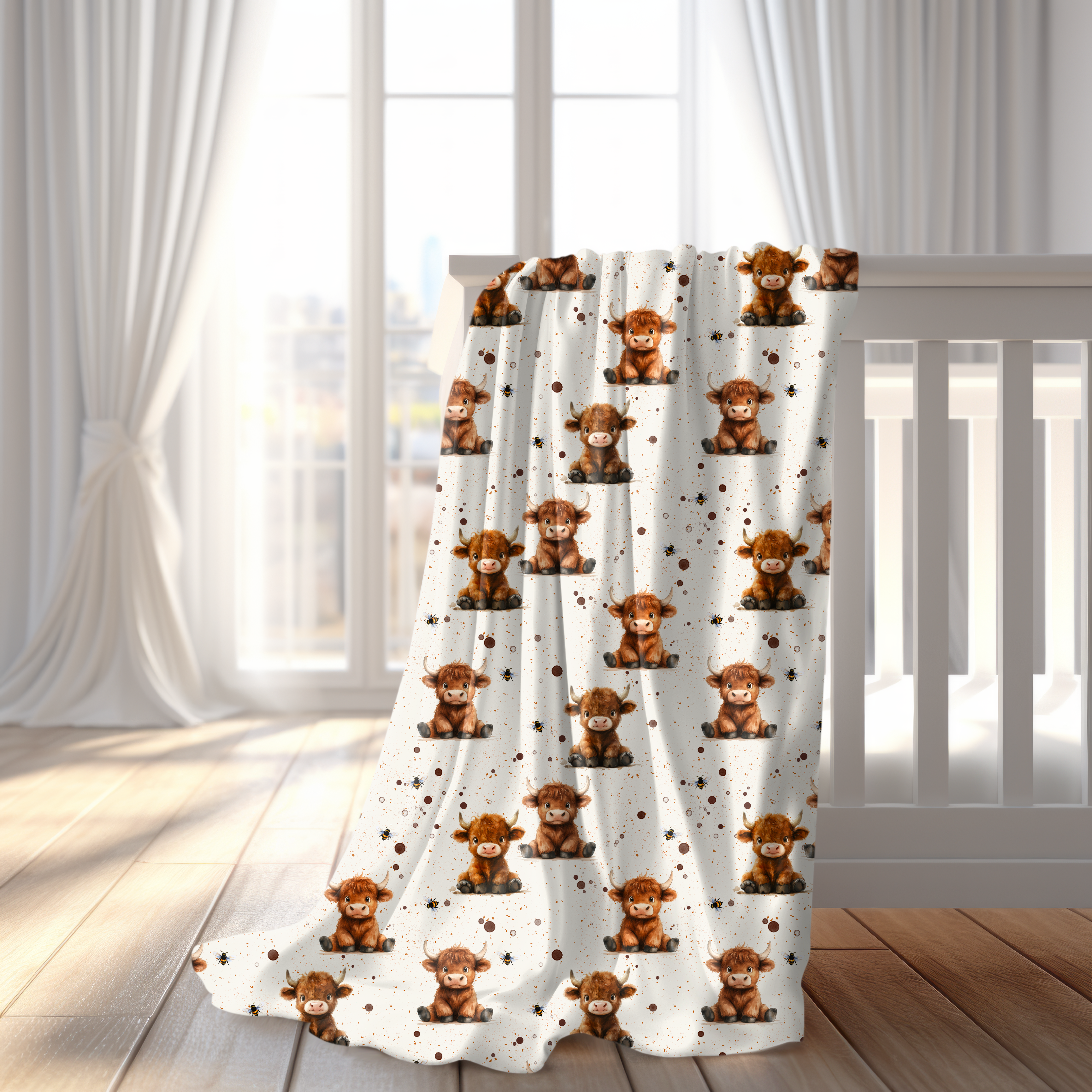 Kuscheldecke Kinder - Hochlandkuh & Bienchen