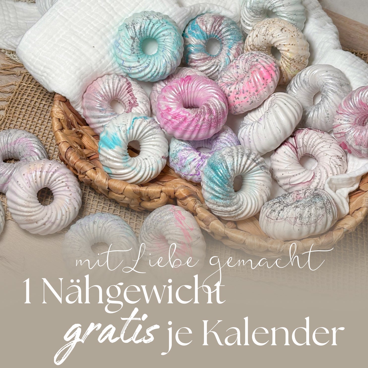 * zu jedem Adventskalender gibt es ein Überraschungs-Nähgewicht in Donut-Form (WICHTIG: nicht (!) pro Adventspäckchen, sondern je Kalender: Ein Nähgewicht).